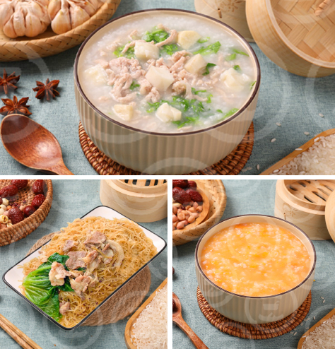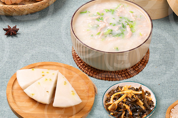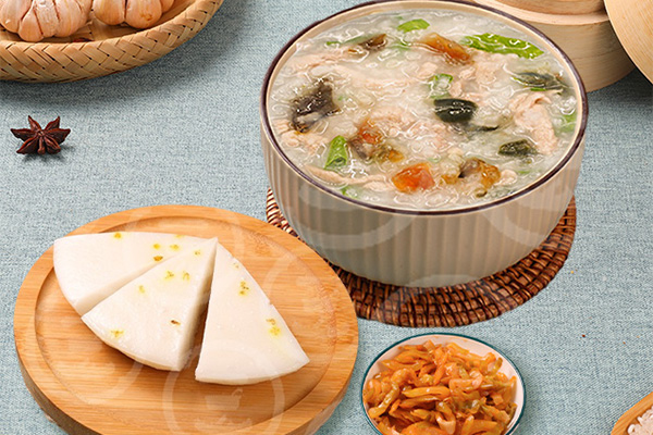 青菜瘦肉粥+桂花糕+海帶筍絲